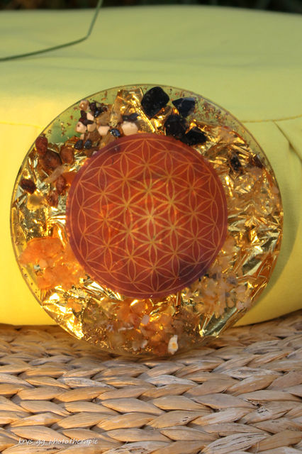 Le plateau orgonite dynamisant est créée selon mon inspiration du moment présent mais la base reste toujours la même, vous y trouverais donc :